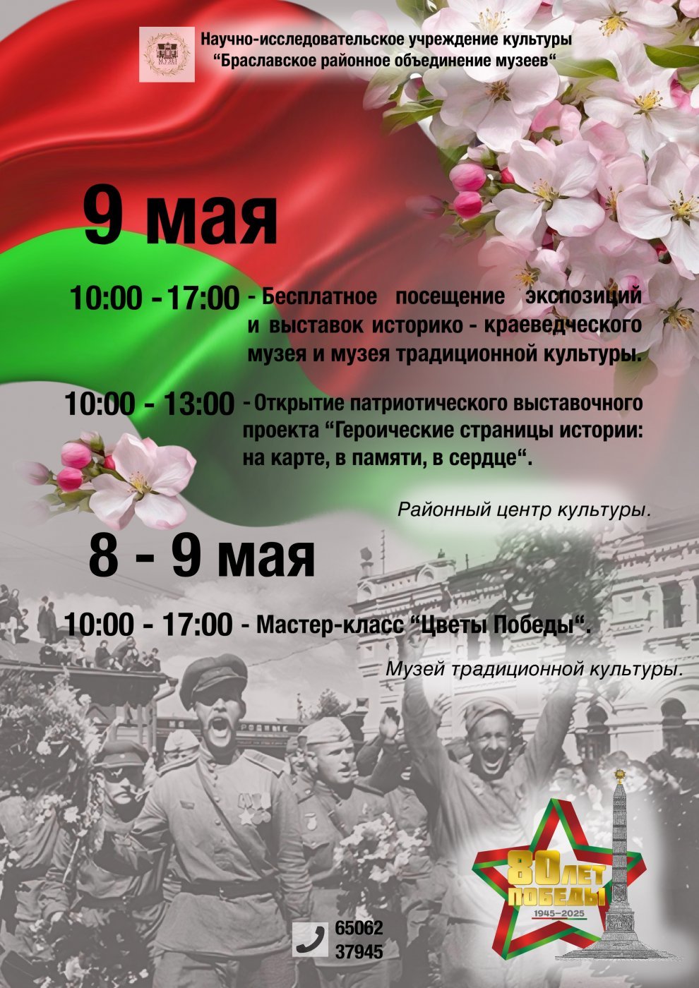 Музеі Браслава сардэчна віншуюць усіх з надыходзячым святам 80-годдзя Перамогі савецкага народа ў Вялікай Айчыннай вайне.