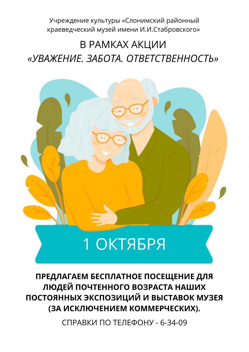 Мы предлагаем бесплатное посещение для людей почтенного возраста наших постоянных экспозиций и выставок музея